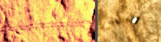 Zoom sur les traces de roulage et sur le rover (doc. NASA/JPL-Caltech/University of Arizona)