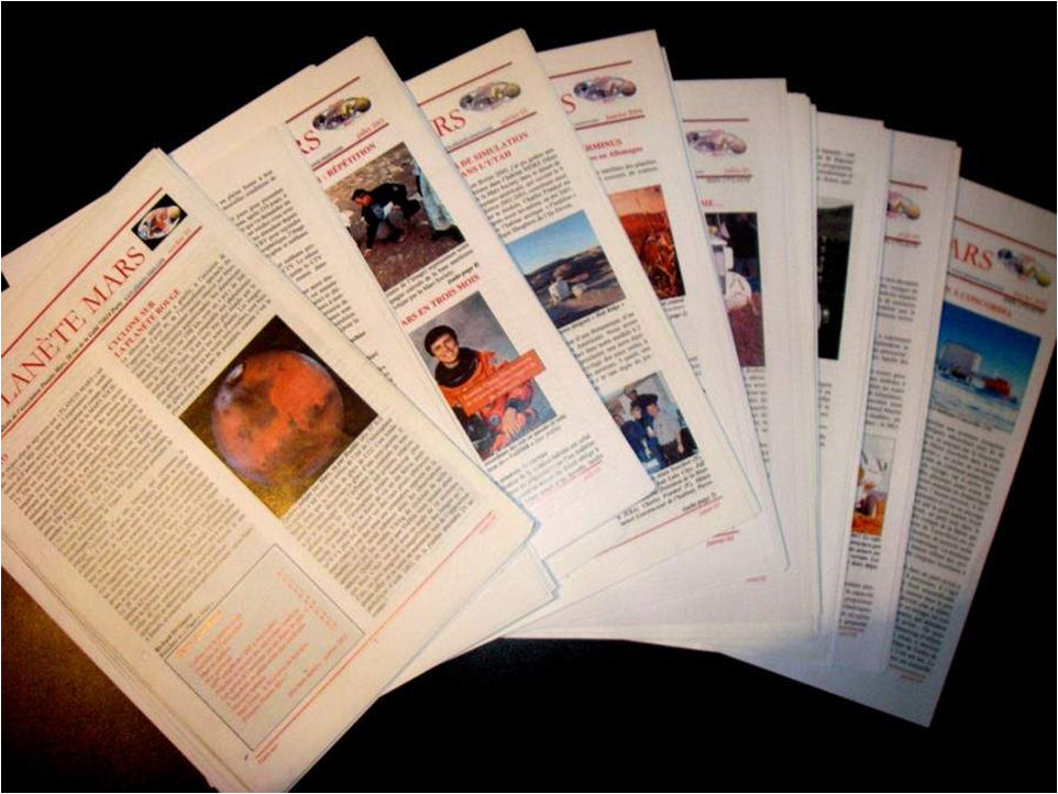 L’association Planète Mars diffuse à ses adhérents tous les trois mois un bulletin d’information. Ces bulletins sont accessibles aux adhérents sur le site internet et font également l’objet d’une diffusion papier. Les bulletins des années 2004 à 2008 viennent d’être rendus disponibles pour tout visiteur du site. Pour y accéder il suffit d’aller dans la rubrique « dossiers » sous rubrique « bulletins » du bandeau du haut de la page d’accueil (https://www.planete-mars.com/category/bulletin/).