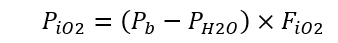 - PH2O : pression en vapeur d'eau dans les poumons, essentiellement d'origine physiologique, de l'ordre de 47 mm Hg, ou encore 63 millibars.